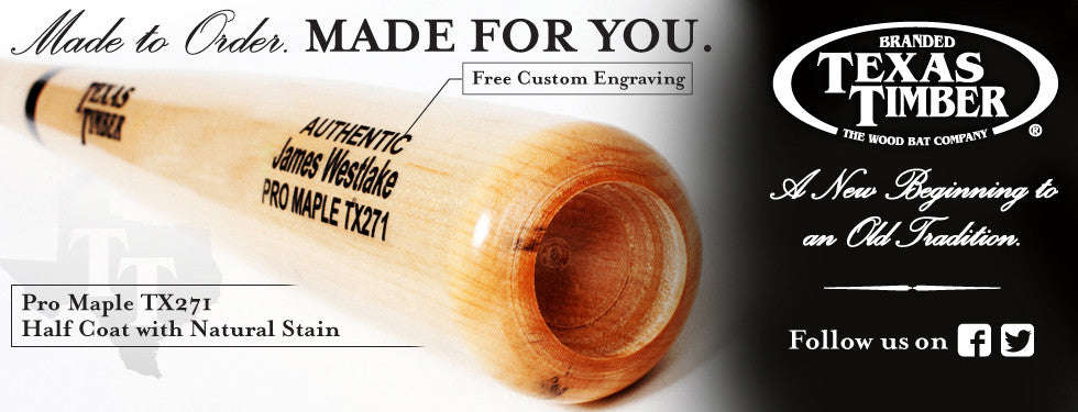 The Texas Timber Bat Co. offers exceptional quality, timeless style, and a brand that reflects the values in America's Pastime. Featuring our hand burned trademark on our bats, we are a preferred supplier of custom wood bats for baseball players across the nation. The Texas Timber Bat Co. is committed to the highest standards by using selected Northern White Ash, Rock Hard Sugar Maple, Yellow Birch and by our time tested manufacturing process. We’ve taken over 20 years of experience to refine our process to bring you our finest products, ready for play, no matter what your playground.
